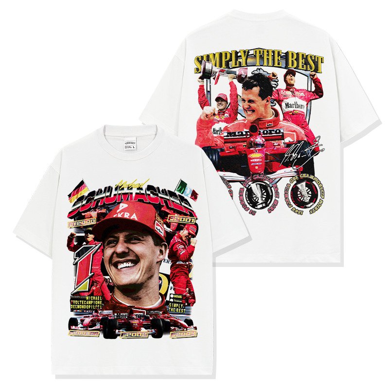 חולצת אופנת רחוב המוקדשת למיכאל שומאכר. נהג המירוצים הגדול בכל הזמנים ואגדת הפורמולה 1 הבלתי מעורערת.