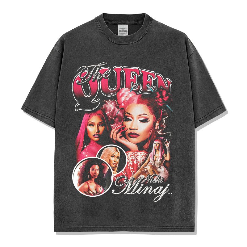 החולצה מציגה עיצוב צבעוני בהשראת ניקי מינאז’. אחת הדמויות המשפיעות, בתעשיית ההיפ־הופ והפופ.