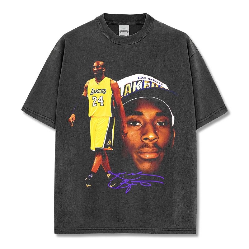 חולצת אופנת רחוב עם הדפס גרפי עוצמתי של קובי בראיינט. אייקון נצחי של ה־NBA ושל לוס אנג’לס לייקרס.