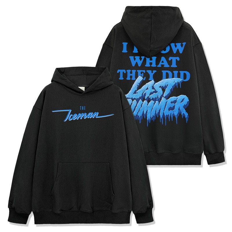בחזית מתנוסס הכיתוב “The Iceman”, ובגב הקפוצ’ון מופיע המשפט “I Know What They Did Last Summer”.