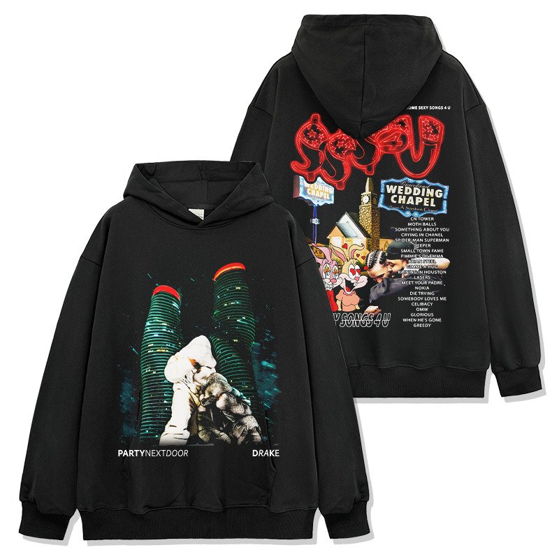 קפוצ’ון ייחודי עם הדפס גרפי בהשראת דרייק ושיתוף הפעולה המוסיקלי האייקוני שלו עם PartyNextDoor.